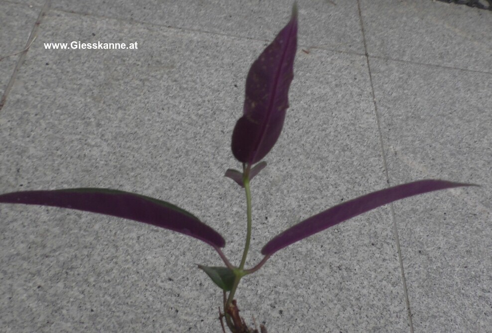 Interessant bei den Blättern: Sieht man auf die Rückseite, so haben diese (siehe Bild) eine violette Färbung.