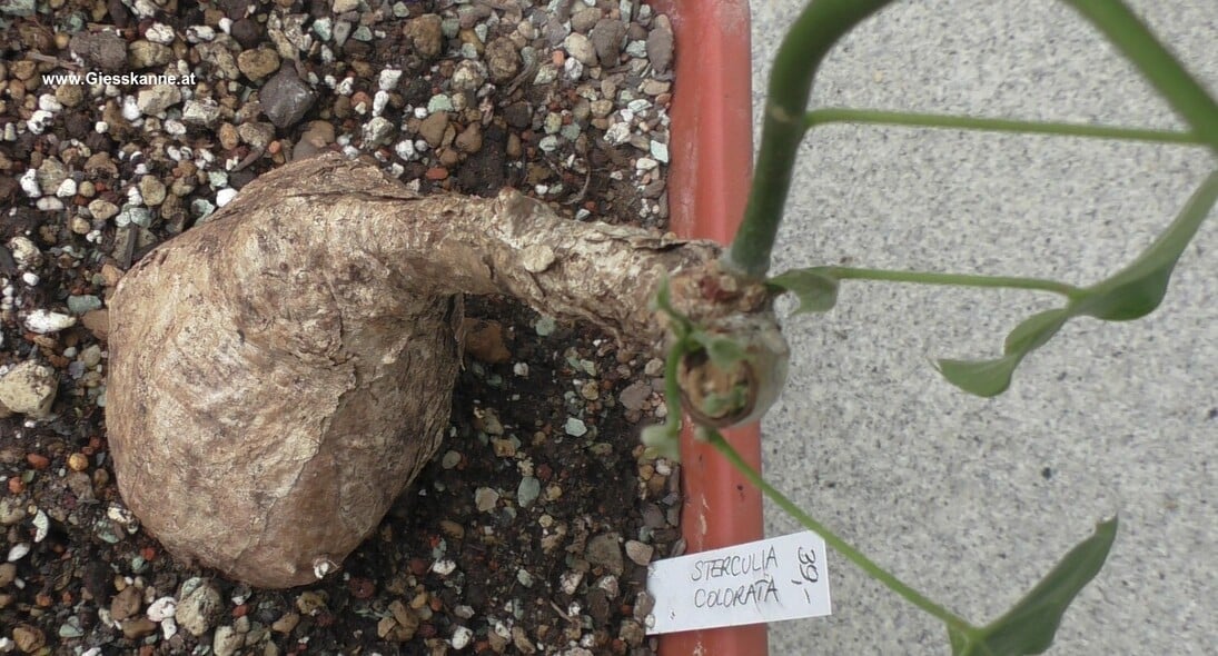 Sterculia und Firmiana colorata sind -nach meinen Recherchen- die selbe Pflanze aus der Familie der Malvengewächse – und ist jedenfalls eine Kaudexplanze, die man auch in unseren Breiten ab und an erwerben kann.